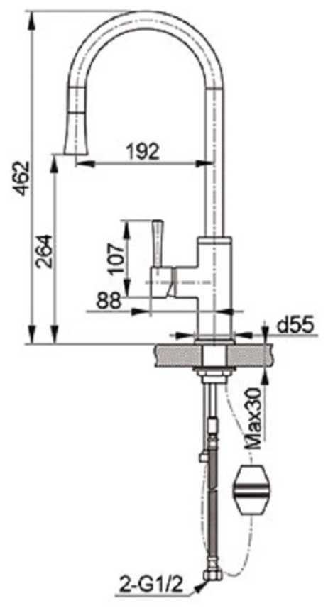 Характеристи GranFest GF 7652 для кухни Выдвижная лейка U-обр. D-35 mm (серый)