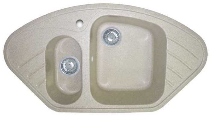 Красивая качественная мойка бежевого цвета под мрамор. У нас угловая кухня, поставили прямо на угол – очень удобно. У нее два отделения: для чашек и тарелок. Сама достаточно глубокая и вместительная. Смеситель у нас высокий, поэтому хватает поворота на оба отделения. Эта первая мойка под мрамор, поэтому особо не разбиралась в правилах ухода за ней. В итоге муж вылил кофе и не протер поверхность после него. Осталось пятно. Оно не сильно заметно, я все-таки пыталась оттереть разными средствами, но все же. Теперь все протираю после каждого мытья посуды.