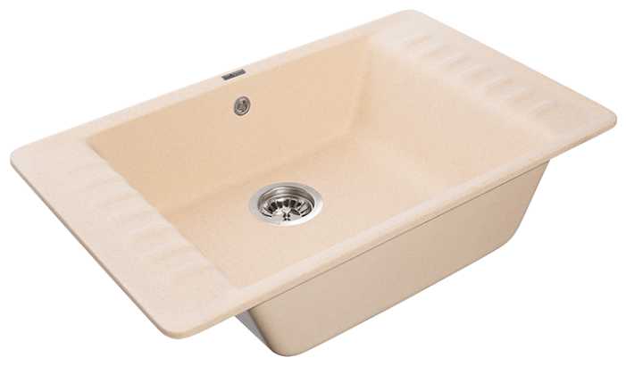 Эта прямоугольная раковина для мытья посуды на кухне бежевого цвета вполне мне нравится. Две стороны немного расширены, так что можно и продукты туда положить, и моющее средство с губкой поставить. С установкой и подключением не возникло никаких проблем, вода утекает быстро во время мытья посуды. При необходимости все появившиеся пятна грязи убираются быстро, много сил прикладывать не нужно.