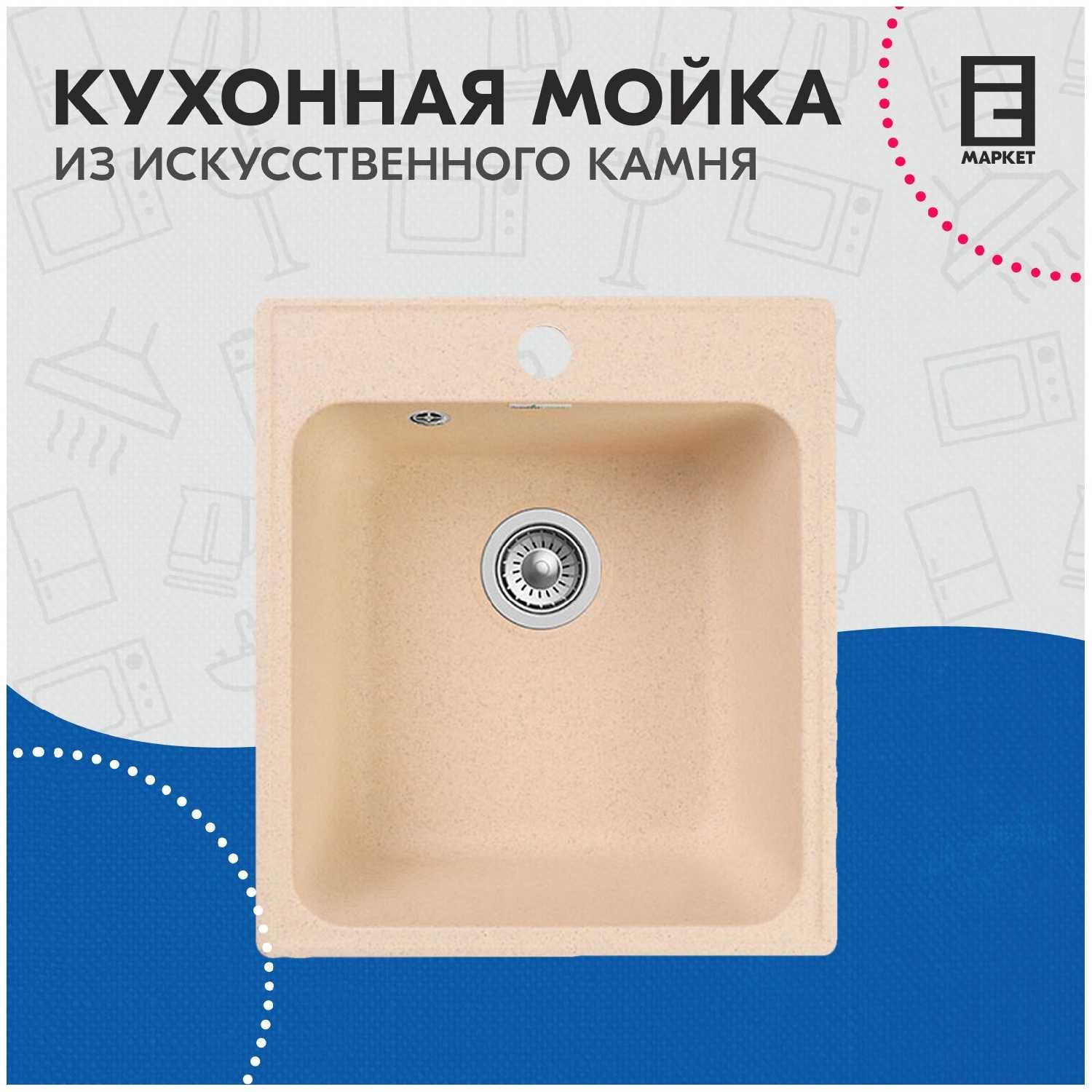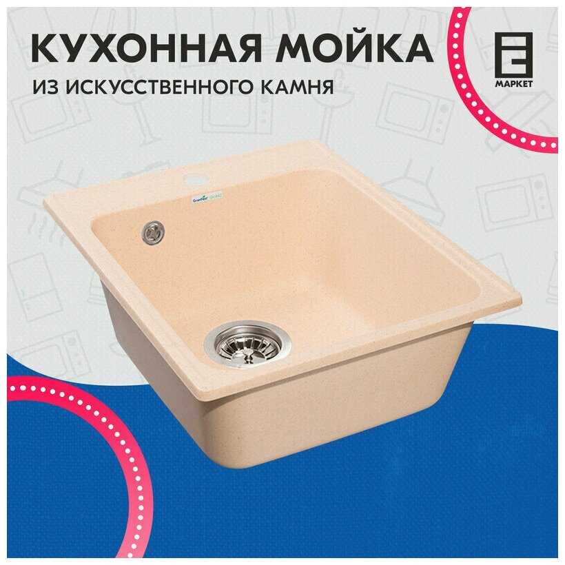 Отзывы о Мойка для кухни врезная каменная GranFest Quarz GF-Z17, цвет песочный, квадратная, 418х477х180 мм