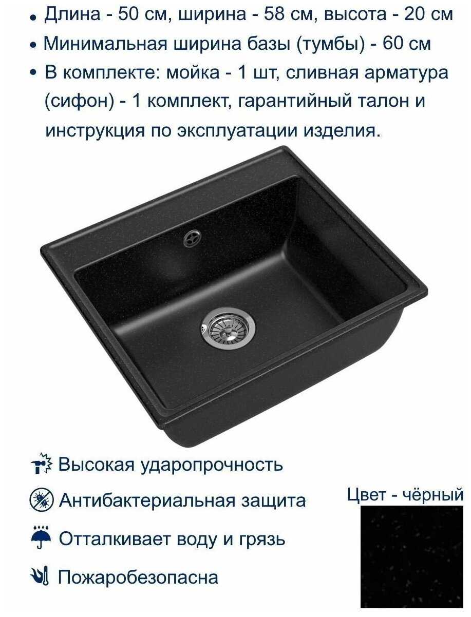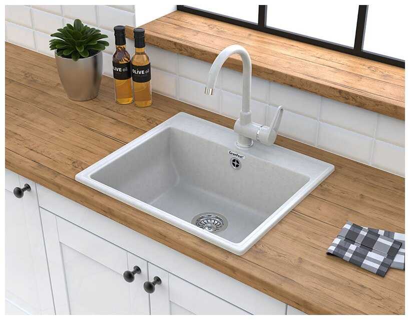 Удобная широкая мойка, в которой комфортно будет человеку с широкими плечами, в дизайне нет ничего лишнего, пропил под смеситель - пятиминутное дело. Для кого-то может послужить недостатком то, что из искусственного мрамора, а не более надежного искусственного кварца.