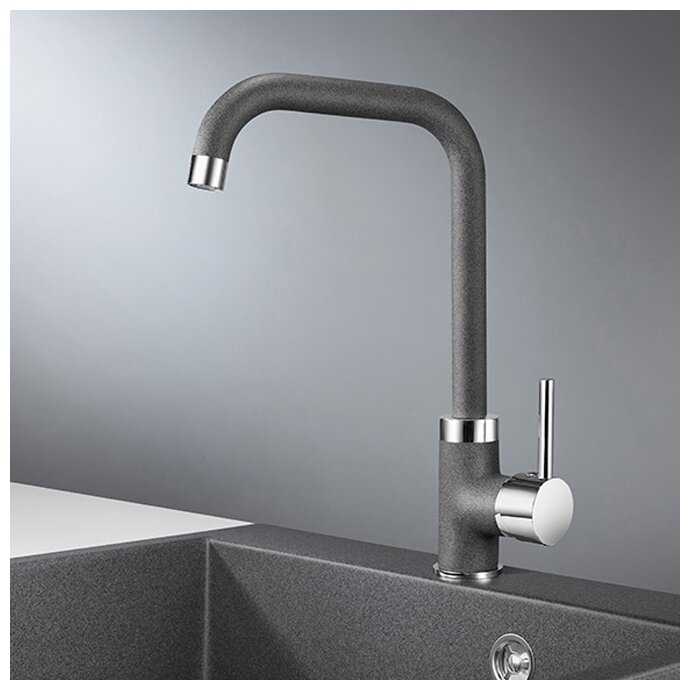 Смеситель отлично работает, мне нравится какой поток воды он поддерживает: ровный, бесшумный и с минимумом брызг. Здорово сочетается с черной мойкой из той же коллекции, к тому же матовая поверхность более устойчива как к повреждениям, так и к загрязнениям. Установился легко, в месте соединения с мойкой не подтекает.