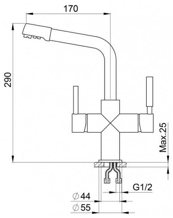 Понравилось, что и фильтрованная и обычная вода из одного смесителя. Не надо сверлить лишних отверстий в раковине, за счет чего кухня выглядит намного красивее и не такой загруженной