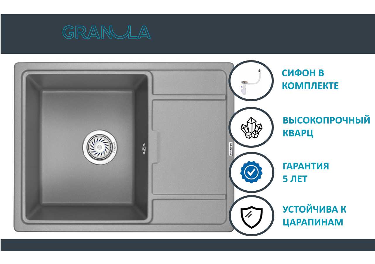 Искал кухонную мойку именно от Granula. Упаковка — на высшем уровне: пенопласт по углам и черная пленка. В комплекте сама мойка, сифон и инструкция. Мойка пришла без повреждений и царапин. Есть насечки для отверстия под смеситель.