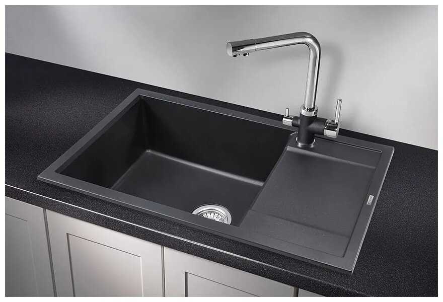 - Натуральные оттенки (черный, графит) органично сочетаются с разными стилями кухонь.