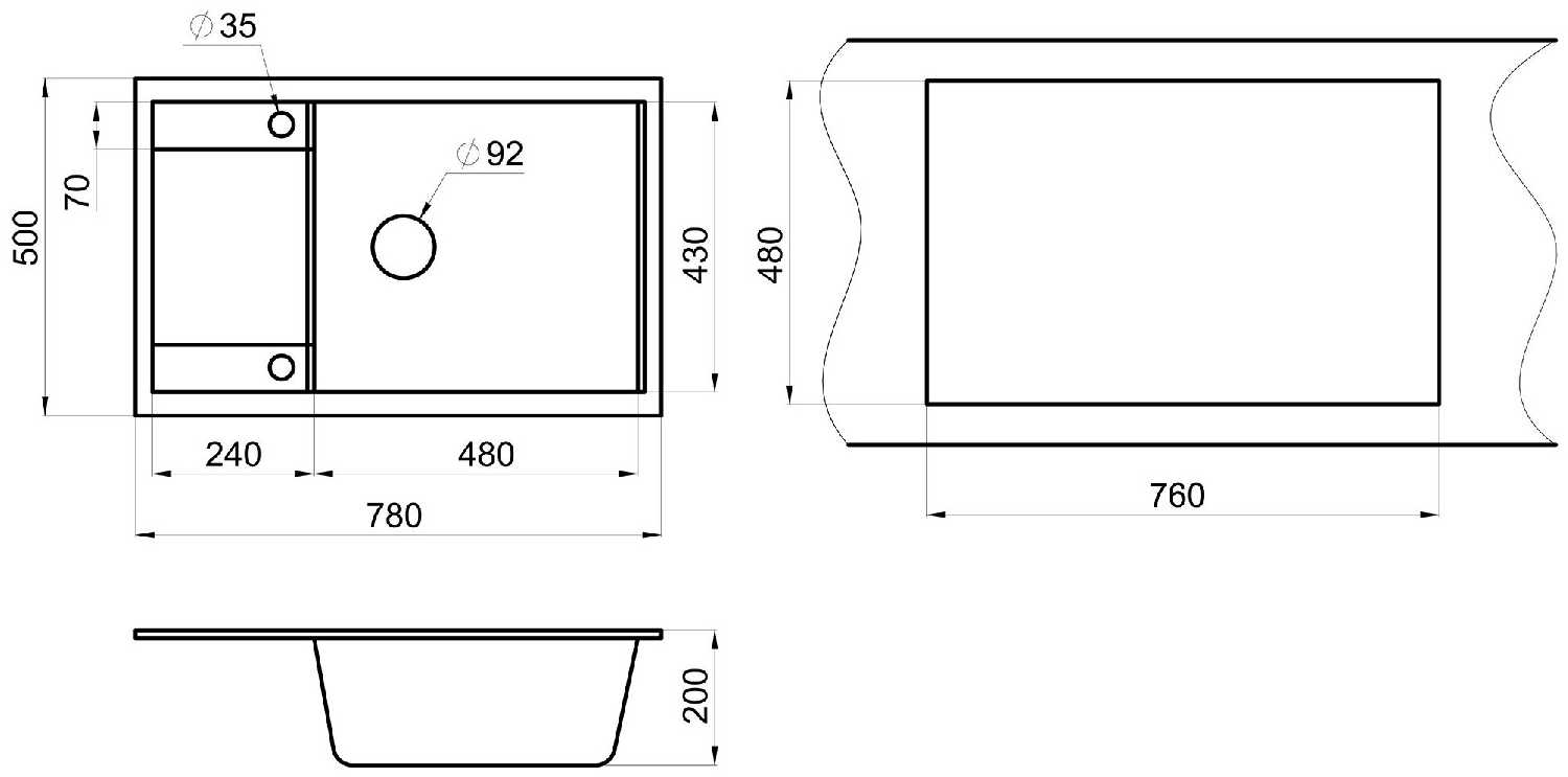 Оптимальная глубина (50 см) снижает нагрузку на спину при мытье посуды. Большая чаша вмещает высокие кастрюли и сковороды, а продуманная форма бортиков минимизирует протечки воды на столешницу. Расположение функциональных зон (крыло, область под смеситель) исключает тесноту. -