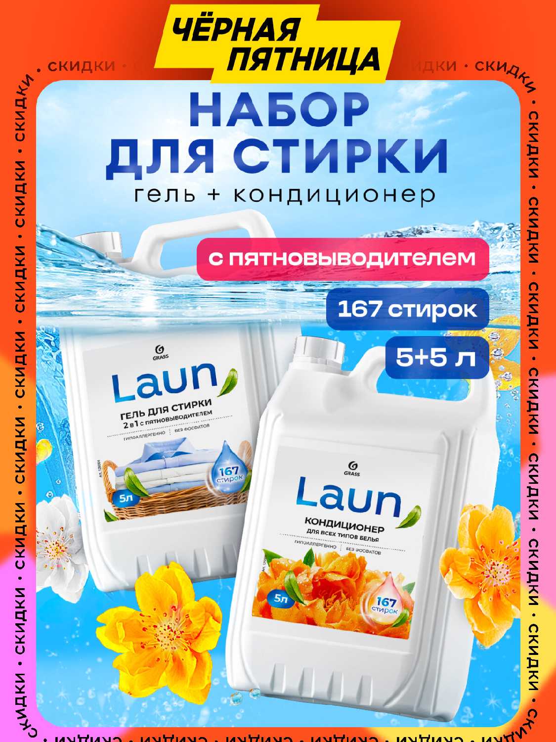- + Отличный Гель для стирки GRASS LAUN 2в1 с пятновыводителем 5 литров + Кондиционер для белья GRASS LAUN 5 литров , беру второй раз . Хорошо отстирывает. Выгодный в ценовом плане. Хорошо упакован.