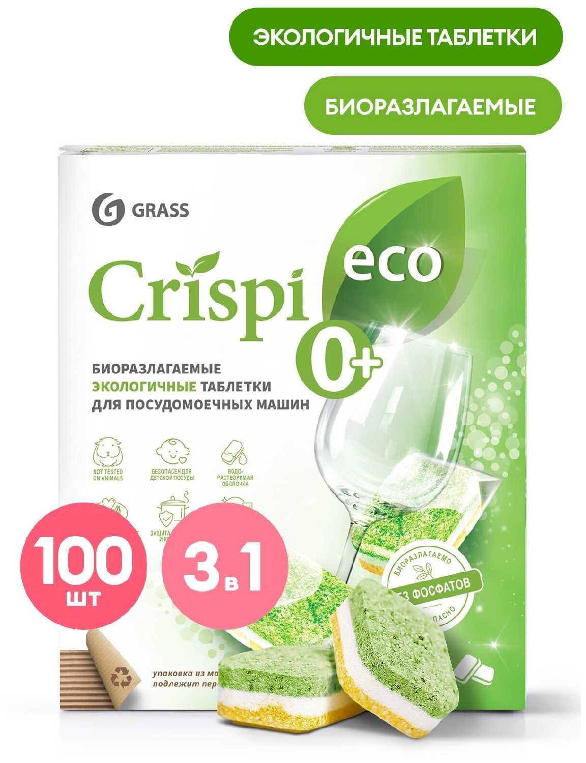 Отзывы о Таблетки для посудомоечной машины Grass Crispi 100шт, бесфосфатные, биоразлагаемые, экологичные таблетки для посудомойки, моющее средство для посуды
