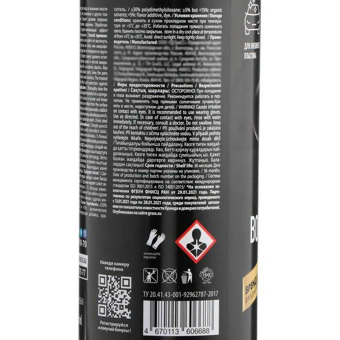 - Средство возвращает выцветшему пластику насыщенный темный оттенок, визуально обновляя поверхности (например, серо-бурый пластик обвеса Соболя стал "благородным темно-серым").