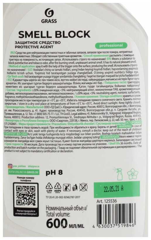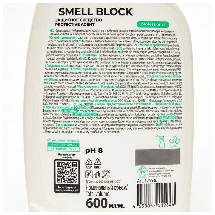 Обзор GraSS спрей Smell Block Professional, 600 мл*: