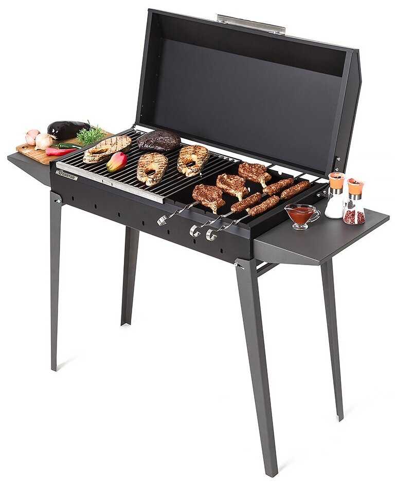 | Особенности : | крышка, переносной, поддон для сбора жира, разборный, решетка, столик |