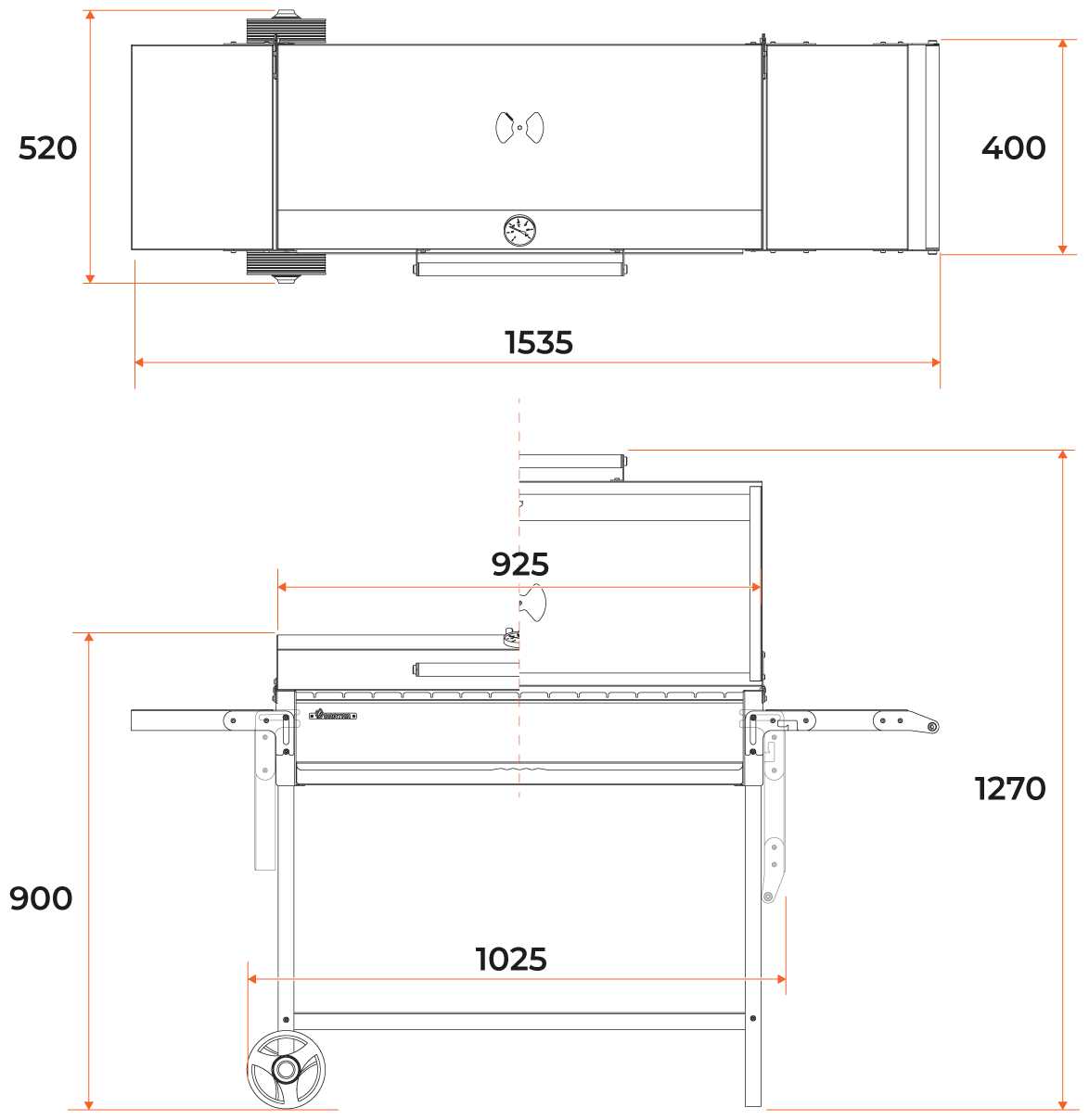 - Вырезы под решётку и шампуры адаптированы под стандартные размеры аксессуаров.