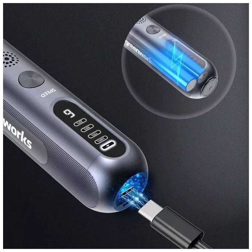 9.1/10 балловgreenworks с набором 52 шт. 6 режимами 5-30 тыс. об./мин. - 80 Вт - 8 В - литиевая батарея 1000мАч