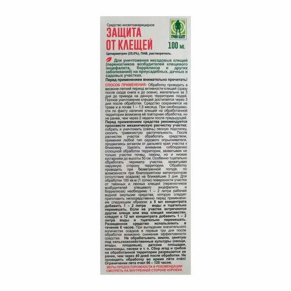 | Подробная комплектация : | Средство от энцефалитных клещей флакон 100мл = 1 шт, картонная упаковка = 1 шт |