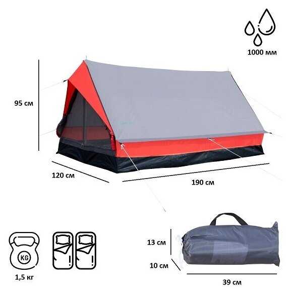 Для двоих взрослых с ребёнком (например, 8 лет) хватит места на ночь в походе выходного дня, дети используют как домик. Но тесно, низко и душно, не для комфорта. Лучше для одного или пары, семьи берут другие, выше и больше. Не для новичков, ищущих удобство. Дети справляются со сборкой. -