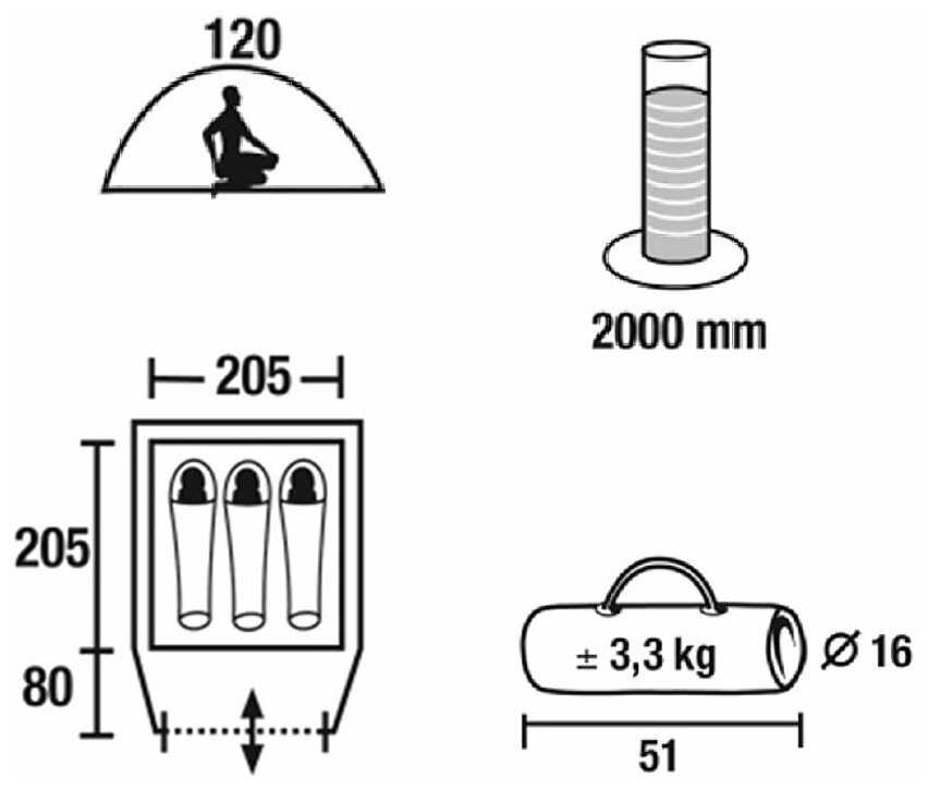 - водостойкость тента: 2000 мм в. ст