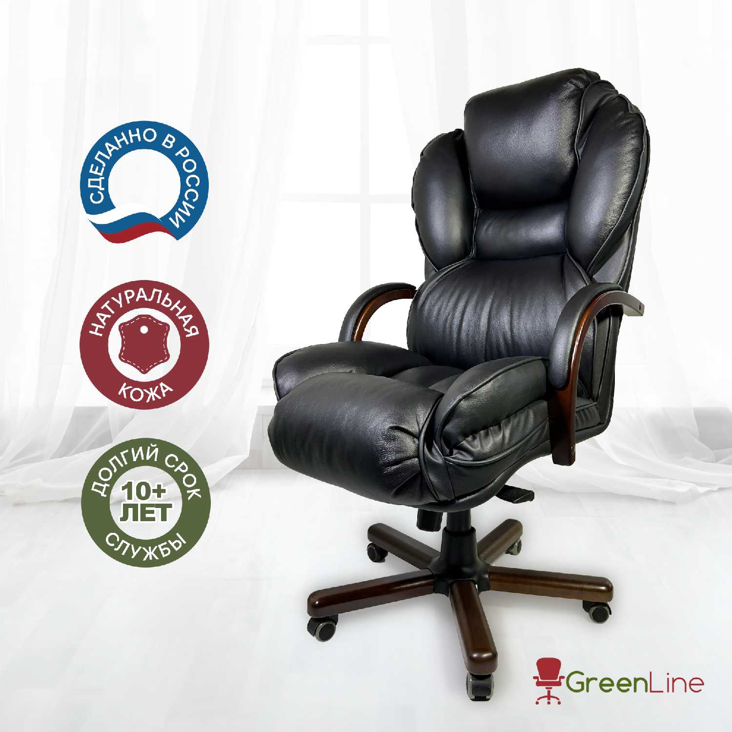 - + Удобное и крепкое кресло, натуральная кожа