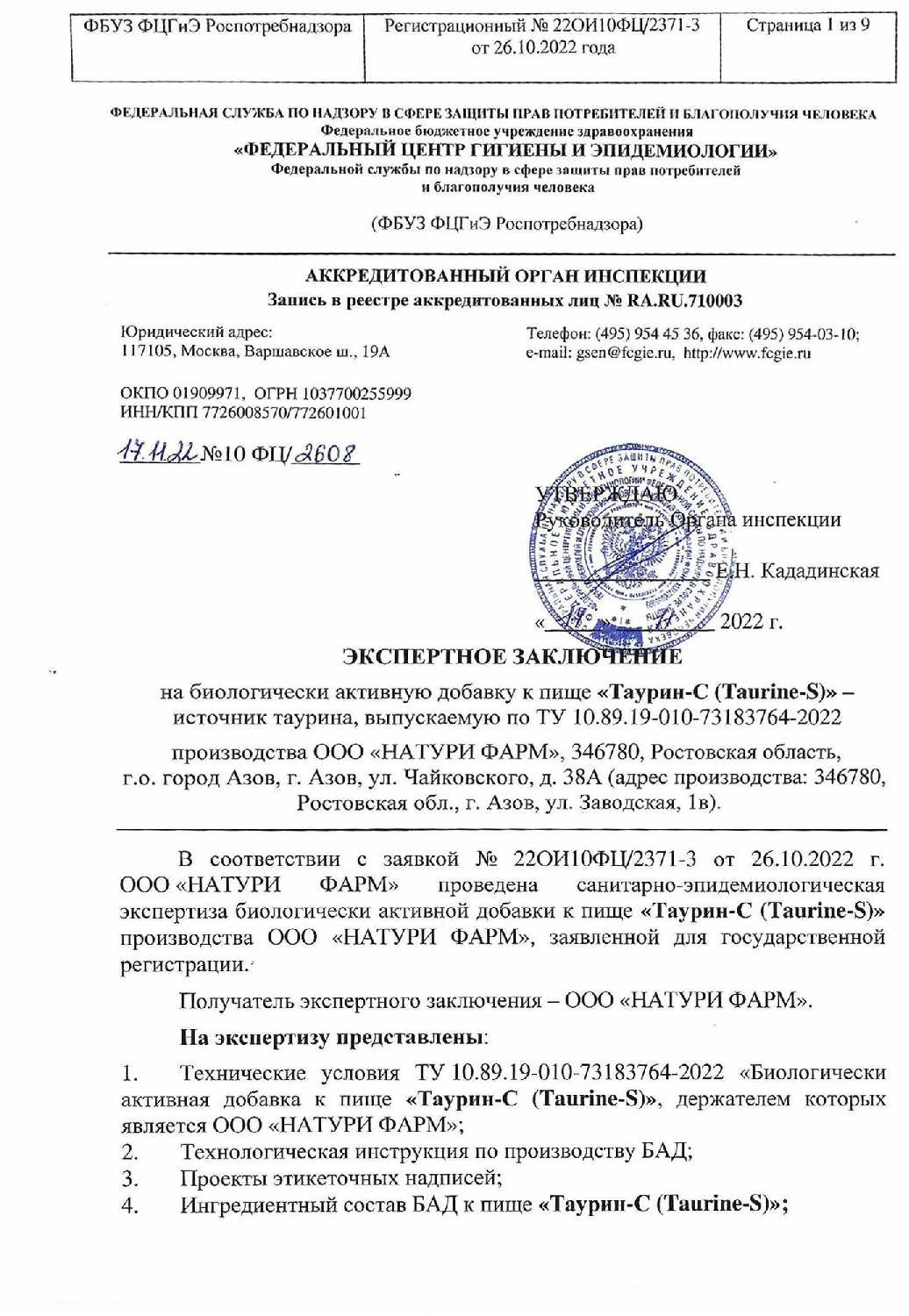 Основной ингредиент : | таурин |