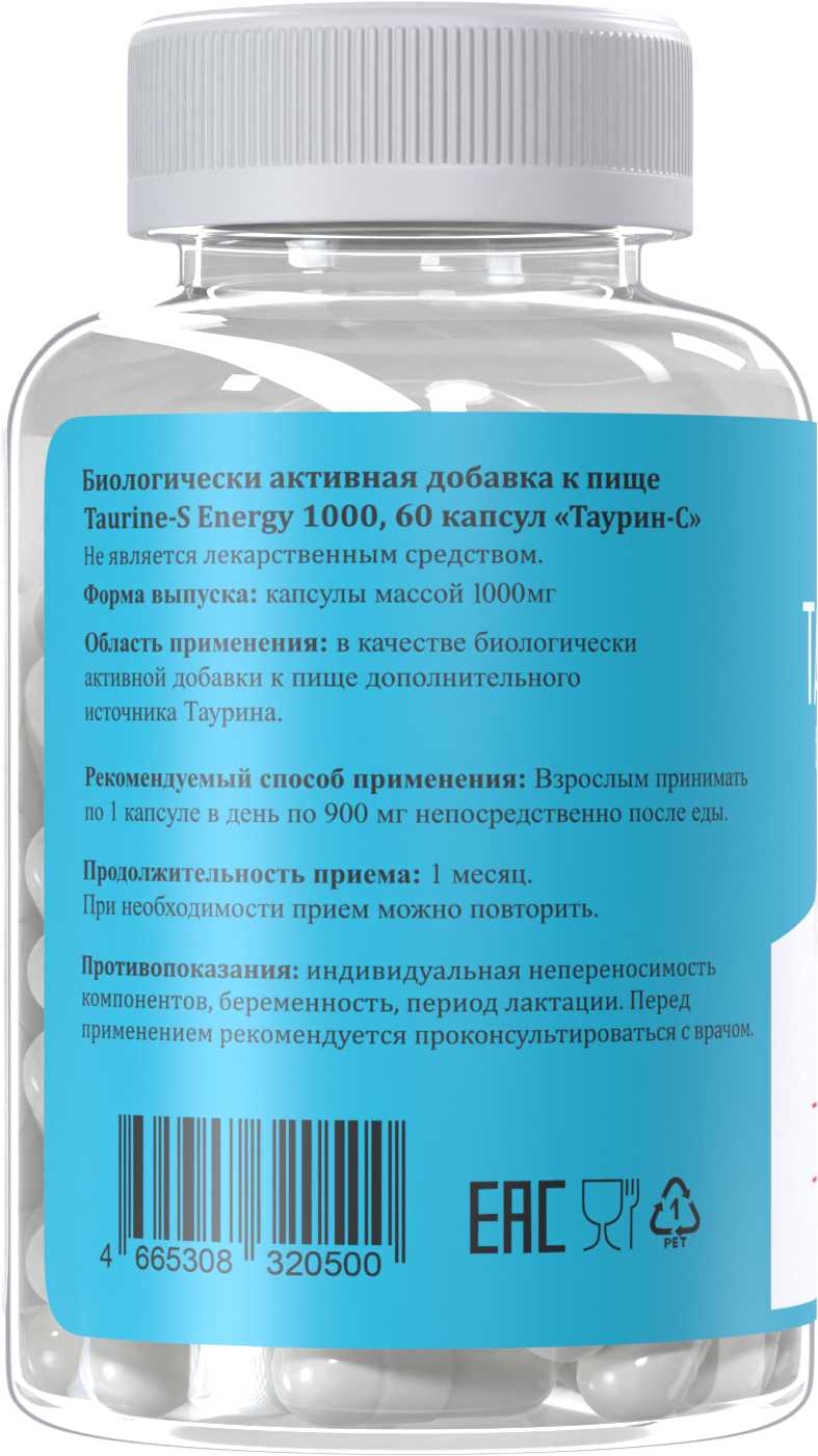 Энергия и выносливость: Таурин может помочь увеличить уровень энергии и выносливости.