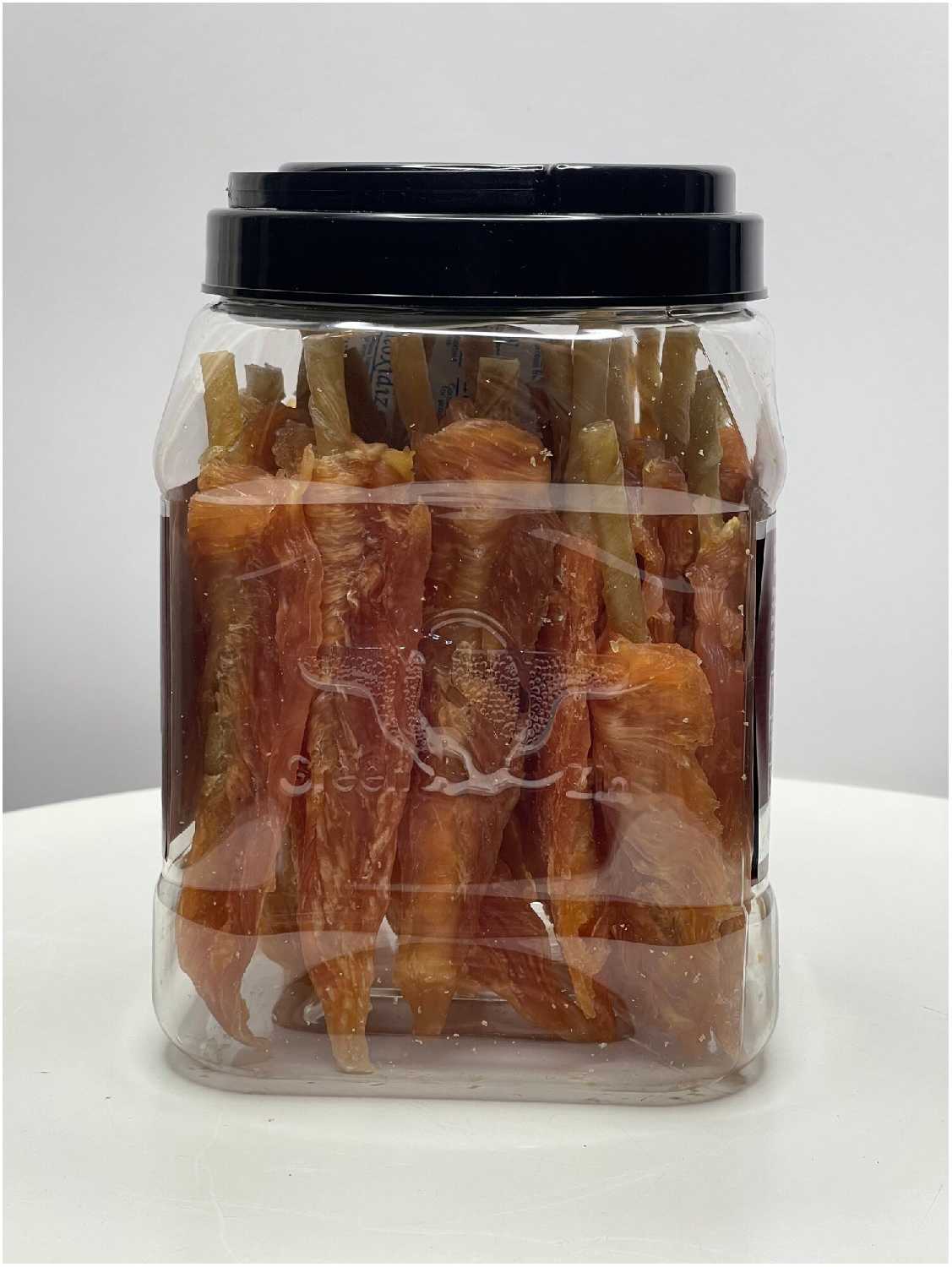 Состав : | воловья кожа 35%, мясо курицы 60%, соль 3%, соевый протеин 1%, пищевой глицерин 1% |