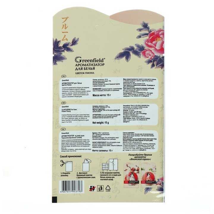 169 отзывов пользователей o Greenfield Ароматизатор для белья Цветок пиона, 15 гр