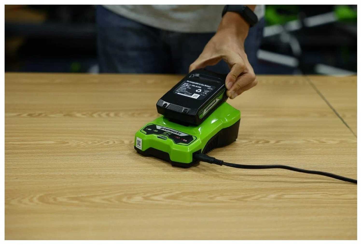Зарядное устройство демонстрирует безупречную совместимость со всей линейкой инструментов Greenworks 24V, что неоднократно подчёркивается владельцами триммеров, цепных пил, кусторезов и шуруповёртов. Пользователи ценят возможность использования единого стандарта аккумуляторов для разнообразного оборудования, что исключает необходимость в отдельных зарядках для каждого инструмента. Универсальность креплений позволяет быстро менять батареи между устройствами без перезарядки, создавая эффективную рабочую экосистему, особенно востребованную на дачах и при частом использовании.