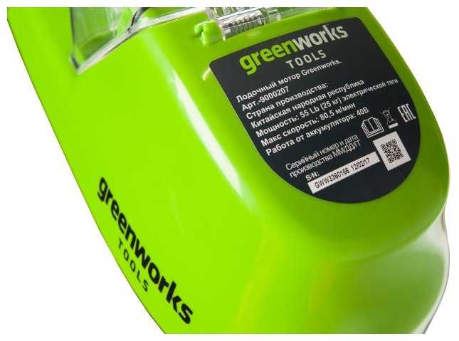 - + Есть техника greenworks, сменные аккумуляторы, поэтому искал лодочный мотор greenworks40 MAX 2 - месяца!...