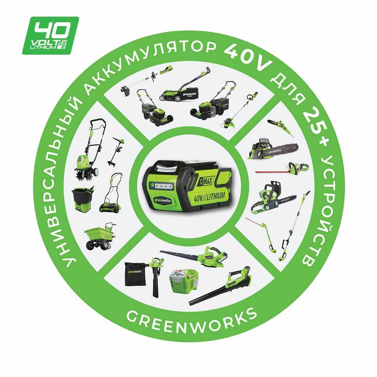 | Совместимость : | питания всех устройств Greenworks линейки 40V |