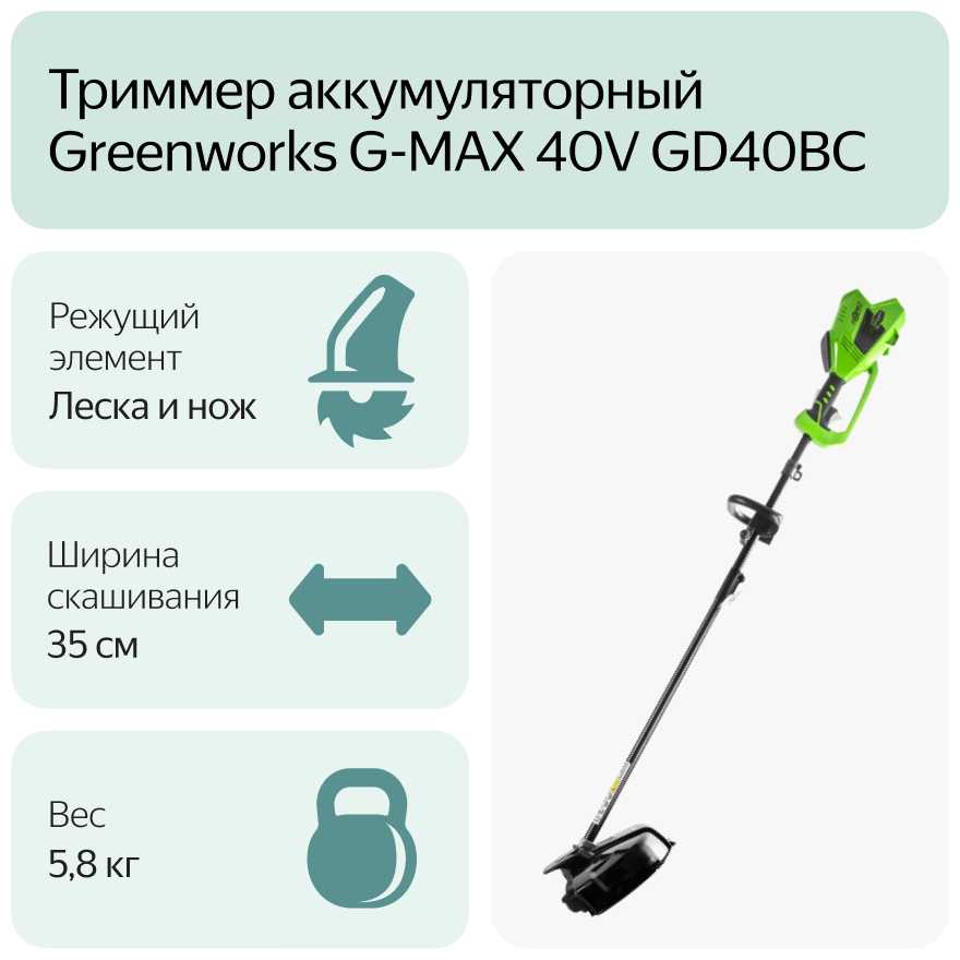 Обзор greenworks G-MAX 40V GD40BC (1301507) - мнение пользователей*: