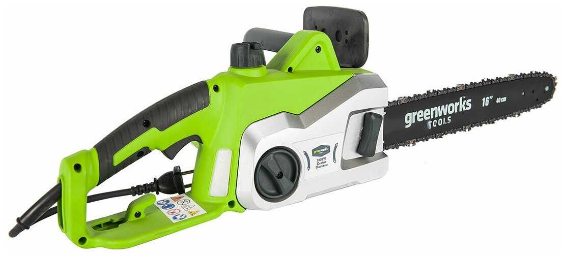 Дополнительная информация : | Электрическая цепная пила GreenWorks GCS1840 20027 подходит для распила веток, бруса и бревен. Укомплектована гарнитурой Oregon, что обеспечивает высокое качество реза, комфортную работу. Натяжение цепи осуществляется без использования инструмента. Пила не требует времени на подготовку к работе. Предохранитель и цепной тормоз обеспечивают безопасность оператора. |