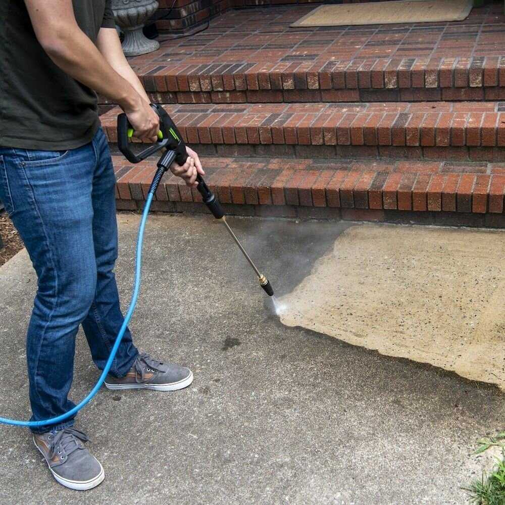 Регулировка давления осуществляется не вращением насадки, а её перемещением вперед-назад. Некоторые пользователи ошибочно пытались крутить её в стороны, как на моделях Kärcher. Для снижения интенсивности струи достаточно слегка отодвинуть насадку от поверхности — это позволяет избежать повреждения хрупких материалов. -
