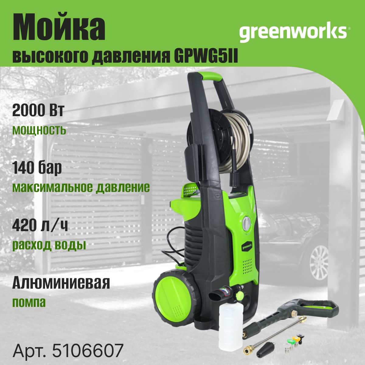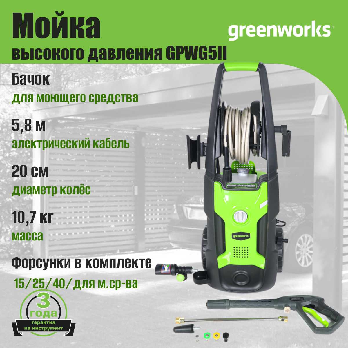 Отзывы о Мойка высокого давления электрическая GreenWorks GPWG5II 140 bar (5106607)