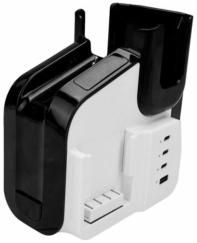 У зарядной стойки есть место для быстрой зарядки дополнительного аккумулятора и ТРИ разъёма для зарядки девайсов, USB и два Type-C,