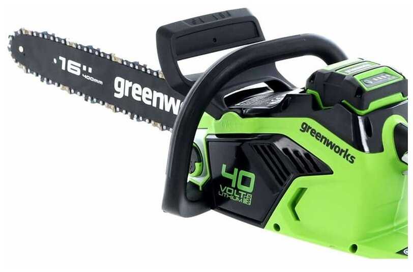Это моя третья аккумуляторная пила greenworks.1-g40cs пила-игрушка умерла,сгорел двигатель ,пилила криво, медленно,сильно не нагружал!!!Купил вторую gd40tcs отработала сезон,на втором сезоне просто остановилась!Запчастей нет в С/Ц,вернули деньги по гарантии.На полученные деньги купил третью,самую мощную в 40 вольтовой линейки с длинной шиной gd40cs18!На самом деле не такая она и мощная, скорость выше а крутящий момент так себе и большая!Всех лучше для моих целей была gd40tcs-легкая,маленькая и тише остальных,даже супруга ей пилила и ни разу цепь не слетала!!!Ещё имеем триммер gd40bck 4 года,очень нравится он мне,с ним проблем нет! Всё покупалось для ежегодных поездок в деревню на 2-3 месяца в год(перевозка в машине,хранение в городе, АКБ держу заряженными зимой на 40-50 процентов).Инструментом доволен (4 из 5).