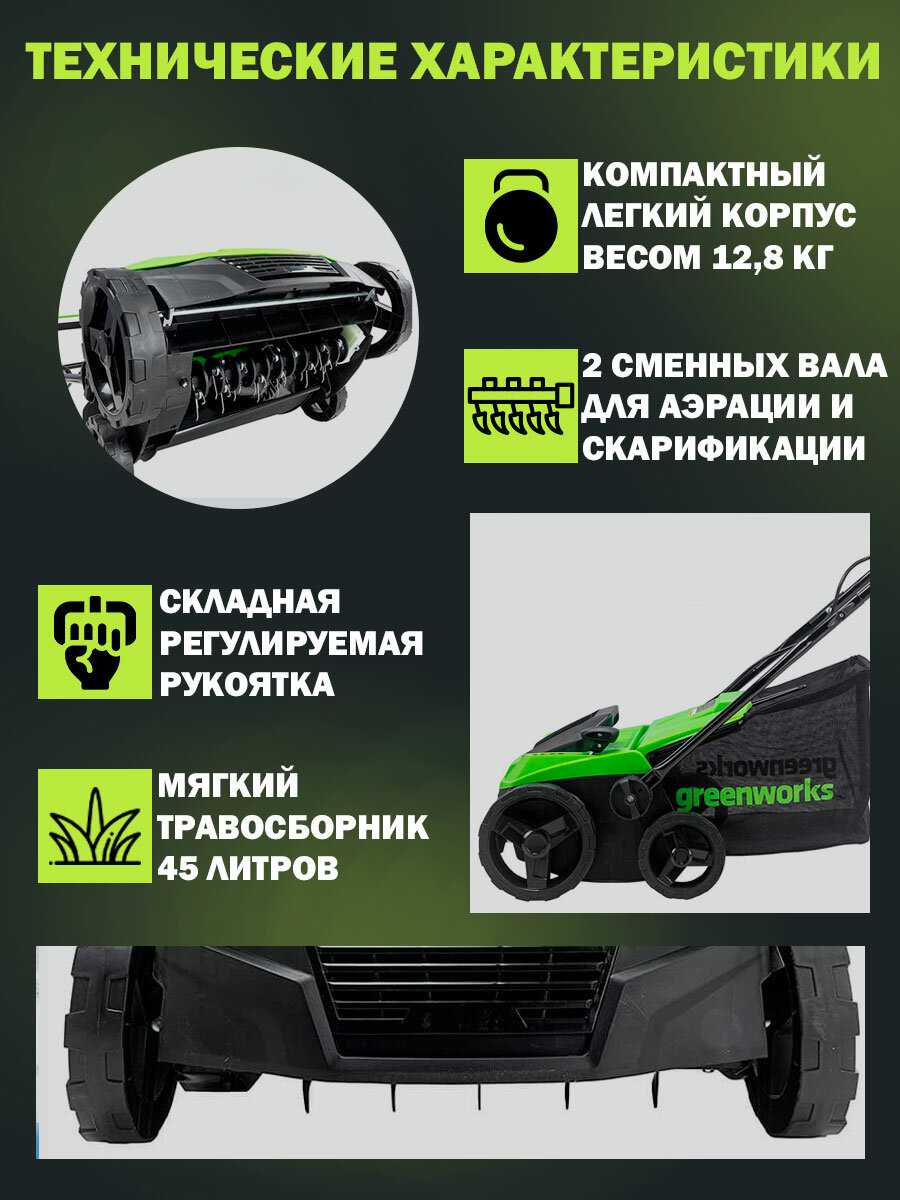 Лучшие цены сегодня на greenworks Вертикуттер-аэратор GDT15 (2515507)