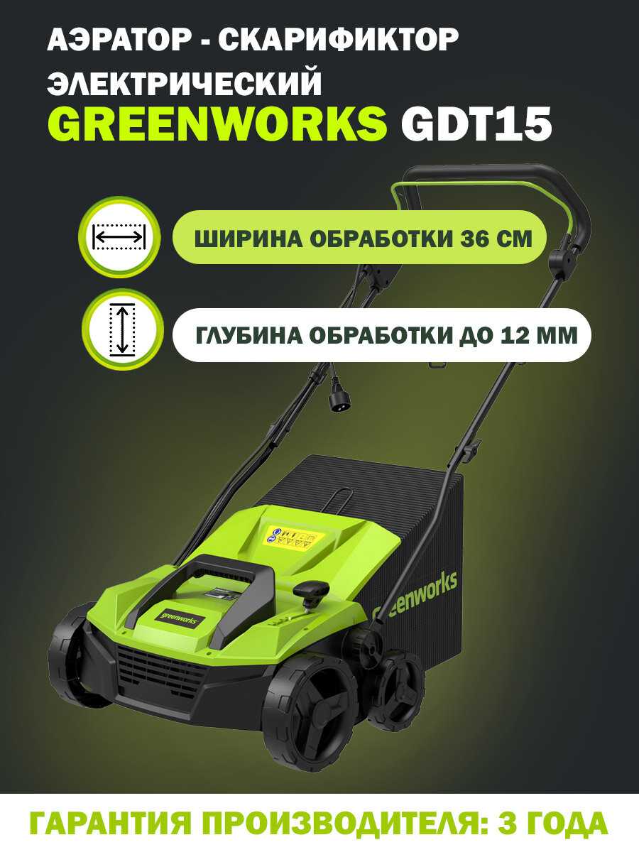 Отзывы о Вертикуттер-аэратор электрический Greenworks GDT15 (2515507)