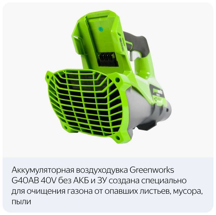 Отзывы о Аккумуляторная воздуходувка Greenworks G40AB, 40 В, без АКБ и ЗУ
