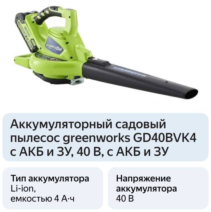 Отзывы о Аккумуляторная воздуходувка Greenworks GD40BVK4
