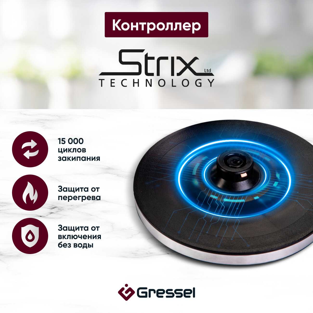 Π§Π°ΠΉΠ½ΠΈΠΊ ΠΎΠ±ΠΎΡΡΠ΄ΠΎΠ²Π°Π½ Π°Π²ΡΠΎΠΌΠ°ΡΠΈΡΠ΅ΡΠΊΠΈΠΌ ΠΎΡΠΊΠ»ΡΡΠ΅Π½ΠΈΠ΅ΠΌ ΠΏΡΠΈ Π·Π°ΠΊΠΈΠΏΠ°Π½ΠΈΠΈ Π²ΠΎΠ΄Ρ ΠΈ ΡΡΠ½ΠΊΡΠΈΠ΅ΠΉ Π·Π°ΡΠΈΡΡ ΠΎΡ Π²ΠΊΠ»ΡΡΠ΅Π½ΠΈΡ Π±Π΅Π· Π²ΠΎΠ΄Ρ. ΠΡΠΈ ΡΠΈΡΡΠ΅ΠΌΡ ΠΎΠ±Π΅ΡΠΏΠ΅ΡΠΈΠ²Π°ΡΡ Π±Π΅Π·ΠΎΠΏΠ°ΡΠ½ΠΎΡΡΡ ΠΈΡΠΏΠΎΠ»ΡΠ·ΠΎΠ²Π°Π½ΠΈΡ ΠΈ ΠΏΡΠ΅Π΄ΠΎΡΠ²ΡΠ°ΡΠ°ΡΡ ΠΏΠ΅ΡΠ΅Π³ΡΠ΅Π² ΠΈΠ»ΠΈ ΠΏΠΎΠ²ΡΠ΅ΠΆΠ΄Π΅Π½ΠΈΠ΅ Π½Π°Π³ΡΠ΅Π²Π°ΡΠ΅Π»ΡΠ½ΠΎΠ³ΠΎ ΡΠ»Π΅ΠΌΠ΅Π½ΡΠ°. ΠΠΎΠΏΠΎΠ»Π½ΠΈΡΠ΅Π»ΡΠ½ΠΎ ΠΏΡΠ΅Π΄ΡΡΠΌΠΎΡΡΠ΅Π½Π° Π±Π»ΠΎΠΊΠΈΡΠΎΠ²ΠΊΠ° ΠΊΡΡΡΠΊΠΈ Π²ΠΎ Π²ΡΠ΅ΠΌΡ ΠΊΠΈΠΏΡΡΠ΅Π½ΠΈΡ, ΡΡΠΎ ΠΈΡΠΊΠ»ΡΡΠ°Π΅Ρ ΡΠΈΡΠΊ ΠΎΠΆΠΎΠ³ΠΎΠ² ΠΏΠ°ΡΠΎΠΌ. -