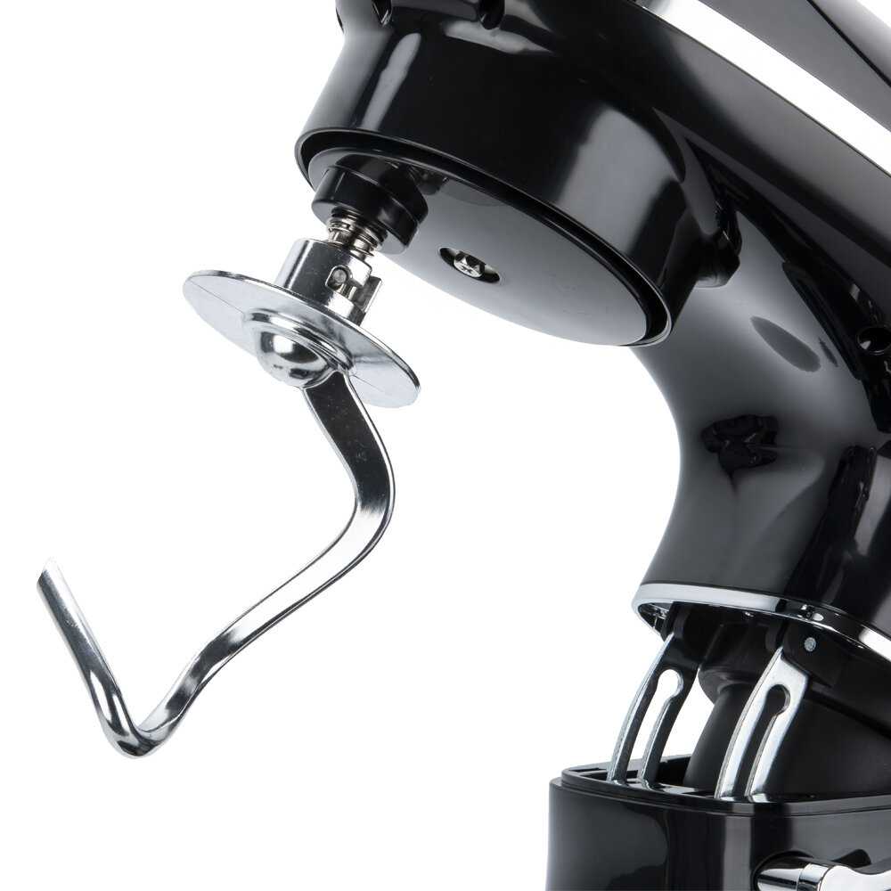 - Крюк для теста с ребристой поверхностью эффективно собирает муку со стенок чаши, минимизируя ручное вмешательство.