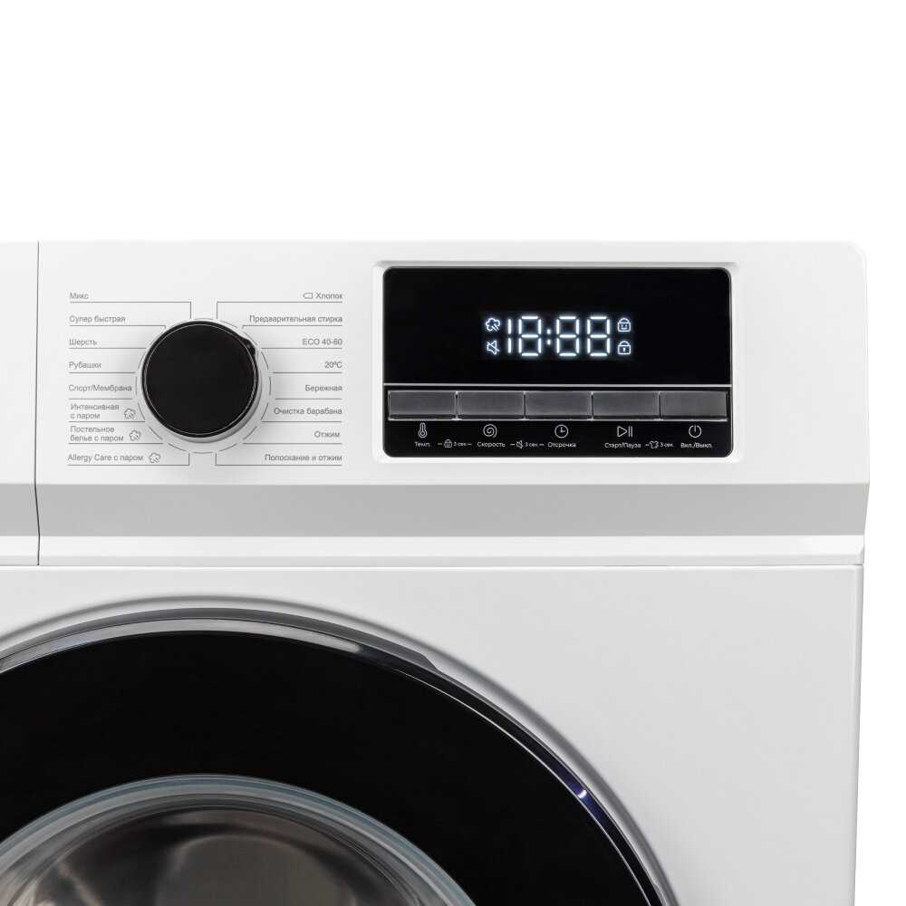Уровень шума и вибрации при работе: Акустический комфорт. Подавляющее большинство пользователей выделяет exceptionally низкий уровень шума как ключевое преимущество данной модели. Многократно отмечается, что машина работает практически бесшумно не только во время стирки и полоскания, но и на высоких оборотах отжима (до 1200 об/мин), что выгодно отличает её от многих предыдущих генераций машин и некоторых конкурентов. Конструкция с прямым приводом и инверторным двигателем обеспечивает значительное снижение вибраций по сравнению с аппаратами на ременной передаче; многие владельцы подчёркивают, что машина не "прыгает" по помещению при отжиме и стабильно стоит на регулируемых антискользящих ножках после правильной установки по уровню. Однако эмпирические данные указывают на существование экземпляров с выраженным дисбалансом, вызывающим сильную вибрацию и перемещение по полу, что может быть следствием производственного брака или ошибок транспортировки, а не общей чертой модели. Насос слива воды, по отдельным наблюдениям, может быть источником слышимого шума, а процесс набора оборотов при отжиме одним пользователем описан как звук "взлетающего самолета", что контрастирует с опытом большинства. Удобство управления и информативность интерфейса. Эргономика панели управления. Сенсорная панель управления получает неоднозначные оценки, формируя один из основных конфликтных аспектов в пользовательском опыте. С одной стороны, часть пользователей, особенно пожилого возраста, отмечает, что после непродолжительного ознакомления (несколько дней) управление становится понятным и удобным, а современный дизайн оценивается положительно. С другой стороны, значительное количество отзывов содержит серьёзную критику: сенсорные кнопки реагируют не моментально, а с задержкой, что раздражает при эксплуатации; процесс выбора и коррекции программы (температуры, скорости отжима, количества полосканий) требует постоянного ручного вмешательства и занимает до нескольких минут, так как预设ные настройки большинства программ не устраивают пользователей. Критичным недостатком, подтверждённым несколькими независимыми наблюдениями, является низкая информативность дисплея во время работы: он отображает лишь оставшееся время, в то время как текущая температура, скорость отжима и этап стирки не видны постоянно — для их просмотра необходимо нажимать соответствующие кнопки, и информация появляется лишь на 2-3 секунды. Количество полосканий вообще нельзя посмотреть, можно только добавить кнопкой. Мелкие пиктограммы и шрифт также затрудняют восприятие информации. Функциональность и эффективность стирки. Режимы стирки и специализированные программы. Машина предлагает широкий перечень программ, включая стирку паром, что позитивно оценивается многими пользователями; режим «Микс» с функцией двойного полоскания отмечен как универсальный и полезный, особенно для людей с аллергией. Однако обнаруживается серьёзное расхождение между заявленными и реальными возможностями. Функция очистки паром присутствует, но некоторые пользователи не смогли найти её в интерфейсе за неделю использования. Максимальная температура нагрева воды ограничена 60°C, а не заявленными 90°C, что является важным ограничением для тех, кому необходима кипящая стирка. Режим быст