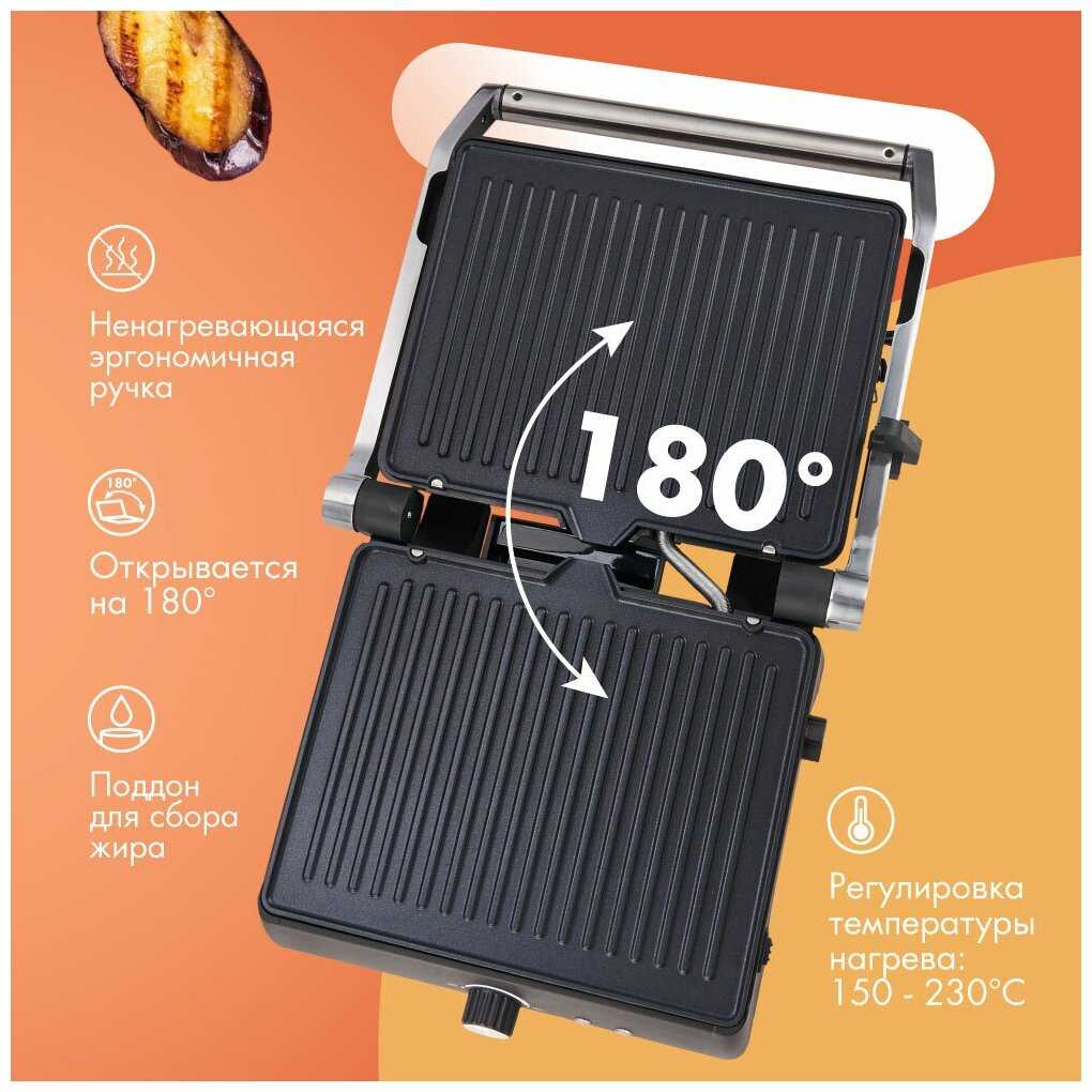 6.5/10 балловENDEVER Grillmaster-225 / 2300 Вт / до 230 градусов / открывается на 180 градусов / электрогриль с антипригарным покрытием