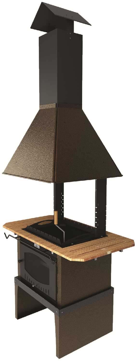 | Дополнительная информация : | в комплекте гриль, решетка-гриль из нержавеющей стали, дер. полка, дымовой купол, дымоход 2 метра, зонт |
