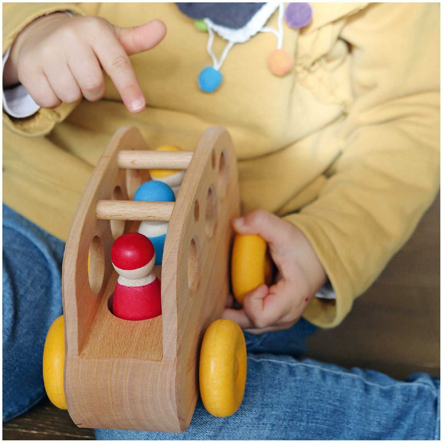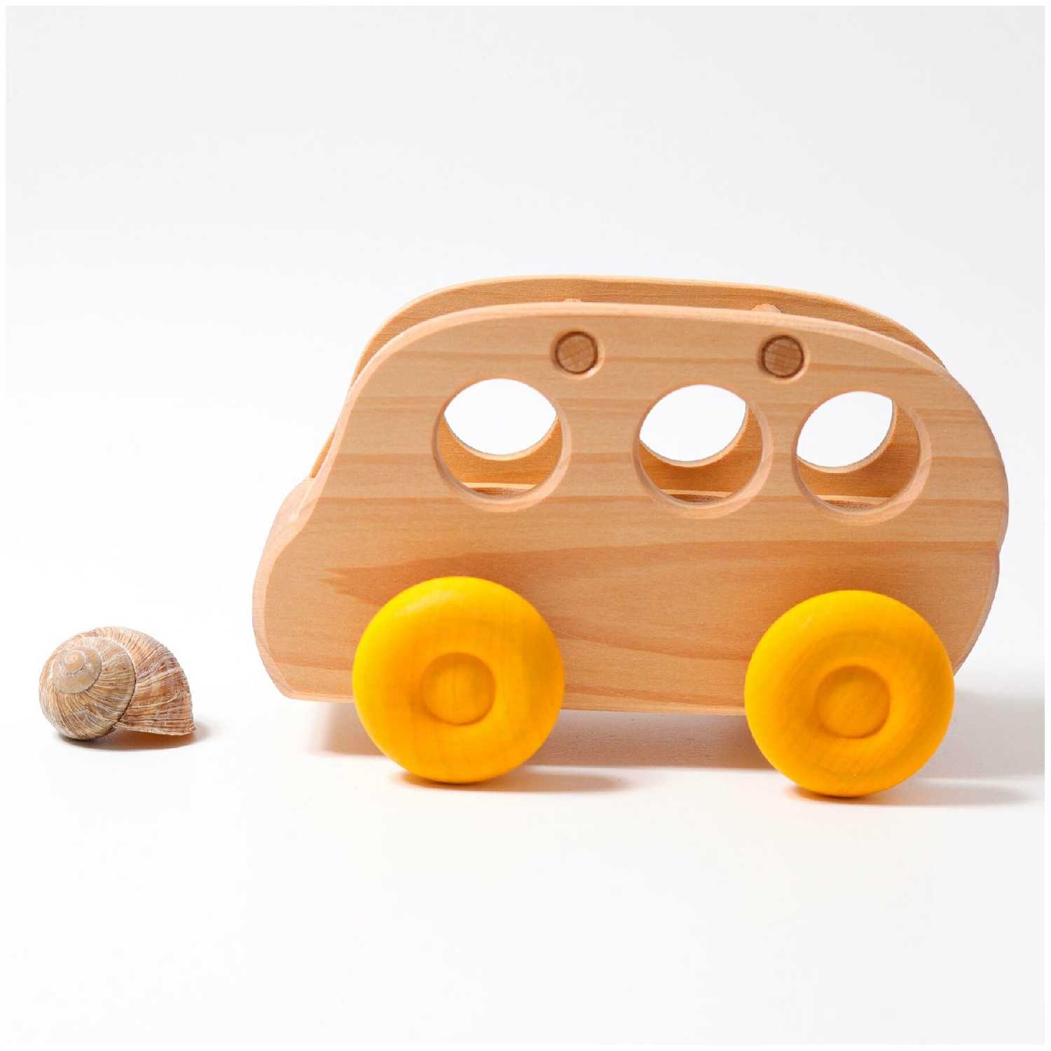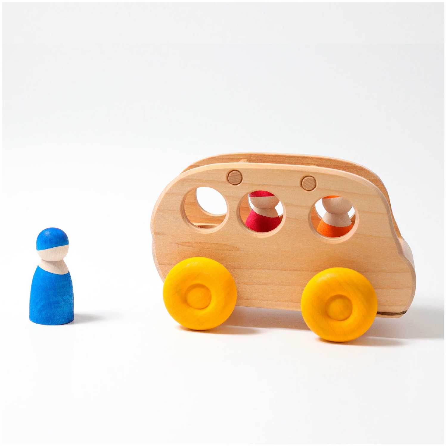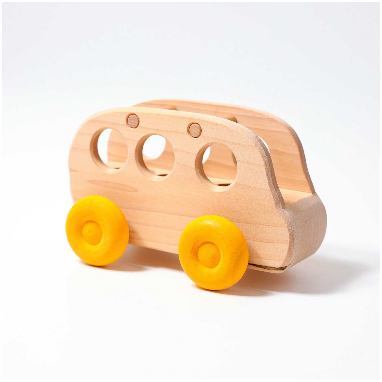 - комплектация: Деревянный автобус неокрашенный с четырьмя желтыми колесами и тремя отверстиями для деревянных человечков от Гриммс