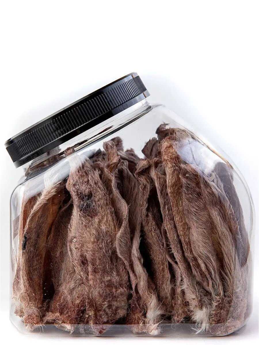 Уши кролика отличаются тщательной просушкой, обеспечивающей длительное хранение и характерный хруст. Размер варьируется: встречаются как "крупные" экземпляры, так и "достаточно длинные", хотя некоторые покупатели отмечают возможность попадания "очень коротких" шнуров. Качество сырья в основном оценивается высоко: уши "чистые", "без неприятного запаха", "пушистые и эстетичные". Однако критичные отзывы указывают на редкие партии с "пересушенностью" (аж ломаются) или "затхлым запахом", что может свидетельствовать о нарушениях в производственном цикле или хранении.
