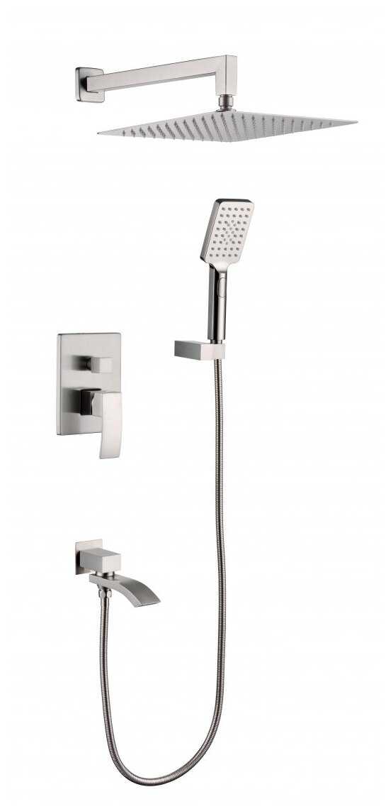 | Комплектация : | верхний душ, излив для набора воды, лейка, ручной душ, смеситель, шланг |