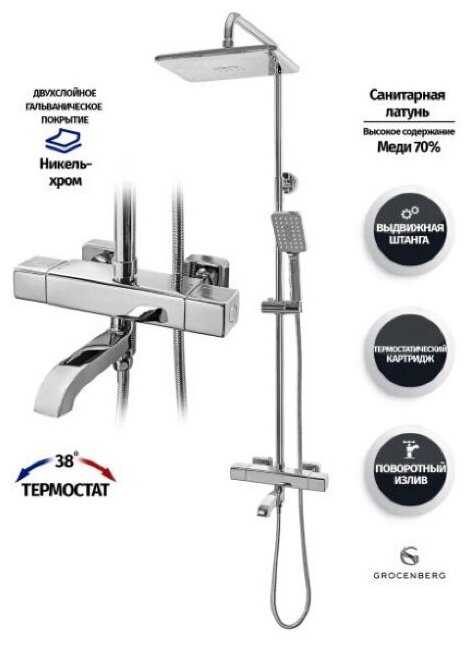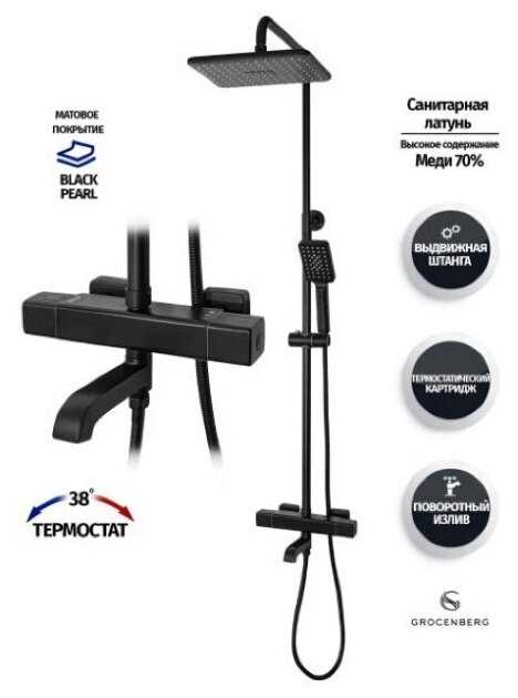 - + Очень красивый и удобный душ, отлично работающий термостат с завода отрегулирован на комфортную температуру, вообще не регулирую горячую воду.