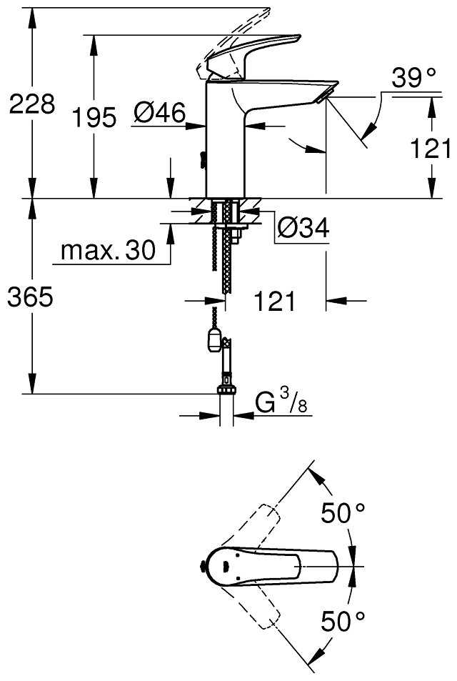 - высота излива: 121 мм.