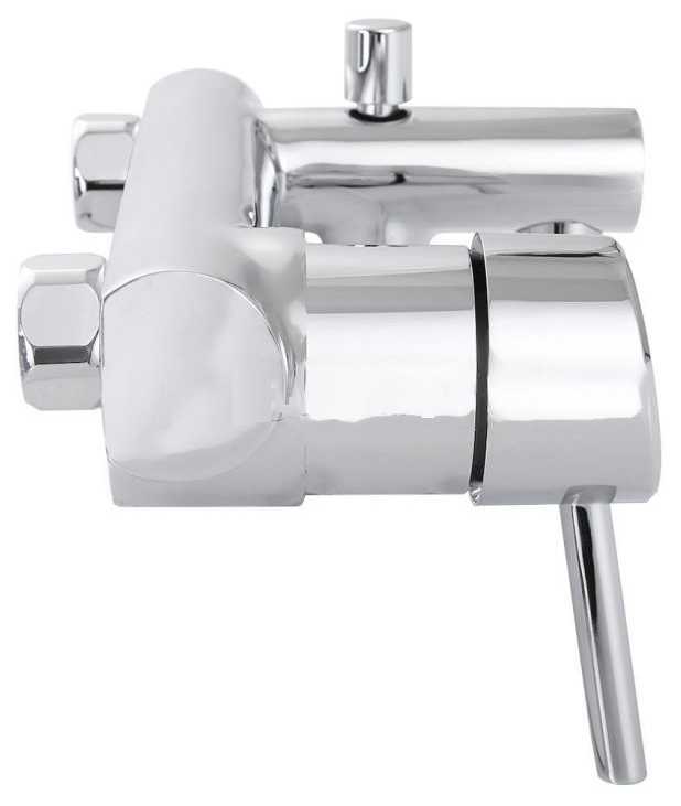 Несимметричная компоновка. - - Тяжеловесный, грубый, несбалансированный дизайн. (На фотографиях этот смеситель выглядит лучше чем оказался в реальности.)