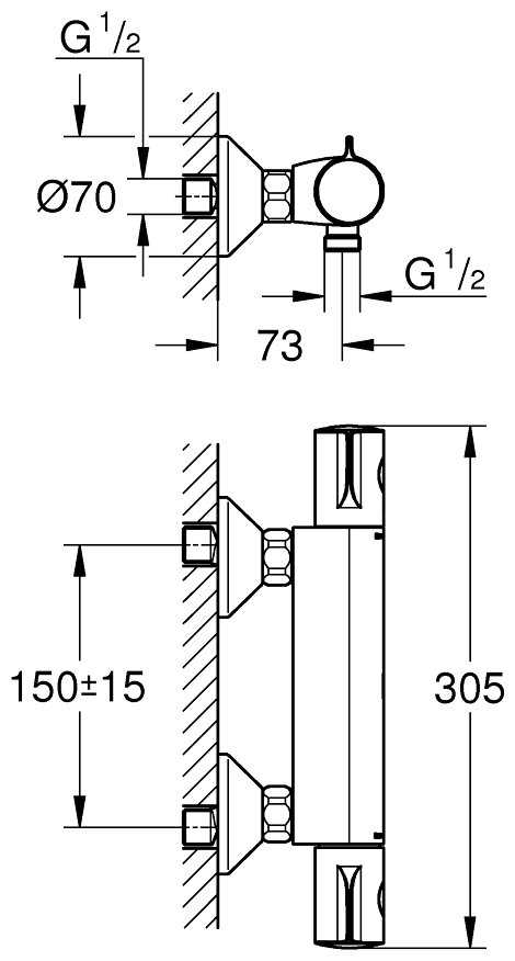 Может это беда всех термостатов, не было возможности сравнить. Но трубы новые, смеситель новый, а из лейки душа (тоже grohe), если повернуть вертикально, струйка не добивает дальше 30 см (регулятор повёрнут за кнопку на повышенный расход). Раньше на всю длину ванны и в стену било при полностью открытом кране. А может это и не вина смесителя, а надо трясти УК для повышения давления.